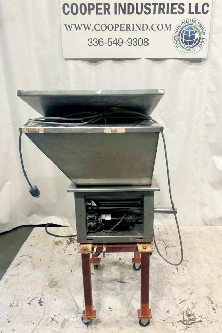 1 ½” ACCU-RATE SCREW FEEDER STAINLESS USED SERIAL NUMBER 6-10036-93 1 ½” SCREW 1 ¾” TUBE 18” x 18” SCREW FEEDER INLET 26” L x 35” W x 15” H FLEXIBLE FEED HOPPER TO DELIVER CONSTANT BULK DENSITY MATERIAL TO THE SCREW PADDLE MESSAGERS TO FLEX THE HOPPER STAINLESS HOPPER WITH HINGED LID COVER ¼ hp DC Gear Motor 90 VDC 2.59 A 1825 RPM 34:1 Gear Ratio 58 RPM Output HANDLING, LOADING, AND SITE MANAGEMENT FEE: $100