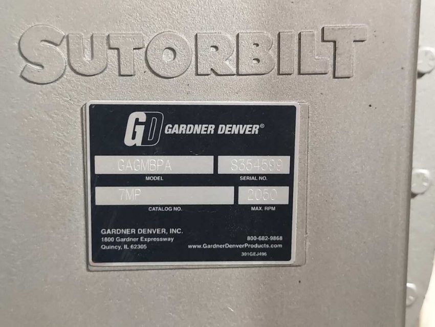30 HP MAC BLOWER PACKAGE SUTORBILT GARDNER DENVER MODEL: GAGMBPA CATALOG #: 7MP MODEL: GAGMBPA CATALOG #: 7MP SERIAL #: S354599 30 HP MOTOR; 460V; 35.5 AMP COMPLETE WITH AIR FILTER AND PRESSURE DIFFERENTIAL GAGE HANDLING, LOADING, AND SITE MANAGEMENT FEE: $100