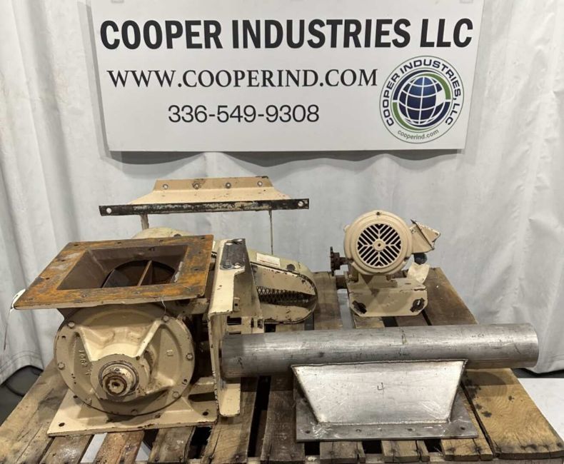 0” x 10” MAC MD 40 ROTARY AIRLOCK CARBON STEEL ROTATES BUT NEEDS A DRIVE CHAIN 10” x 10” INLET/OUTLET W/ 15” x 15” FLANGE 13” FACE TO FACE DIMENSION CARBON STEEL BODY/ROTOR FIXED TIP ROTOR 1 HP 208-230/460 V 3.5-3.6/1.8 A 3 PH 60 HZ 1725 RPM INCLUDES STAINLESS OUTLET TRANSITION TO 4” O.D. PNEUMATIC CONVEY LINE SERIAL # 89-ALMD-12-003 HANDLING, LOADING, AND SITE MANAGEMENT FEE: $50