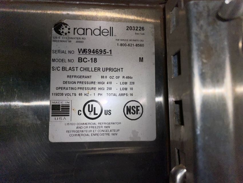 Randell Blast Chiller, Model BC-18, S/N W694695-1 (Skidded $200) (Located Cartersville, GA)
