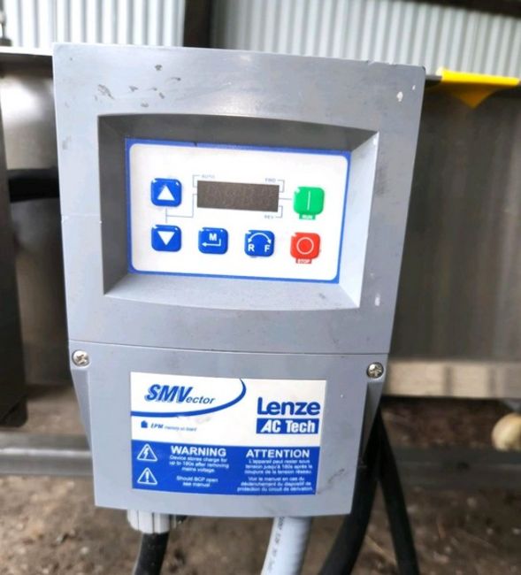 Aprox. 24" W x 72" L S/S Sanitary Solid Blue Belt Food Grade Conveyor with 28" H Infeed and Discharge, Leeson 1/2 hp Drive Motor, 3/60/230-460 Volt, Lenze AC Variable Speed Controller, Complete with Start/Stp Controls, All S/S Frame, Portable on Casters (Crating and Loading Fee $350) Please inquire for shipping rates (Located Winter, WI)