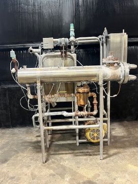 Aprox. 60 Gal. CIP System Tubular Heat Exchanger with Ampco 20 hp Pump, 3520 RPM, Emerson Touchscreen, Adjustable Legs, S/S Steam Trap and Valving, Aprox. 6'4" OAH, 4'8" OAW, 7' OAH (Load Fee $150) (Located Harrodsburg, KY)