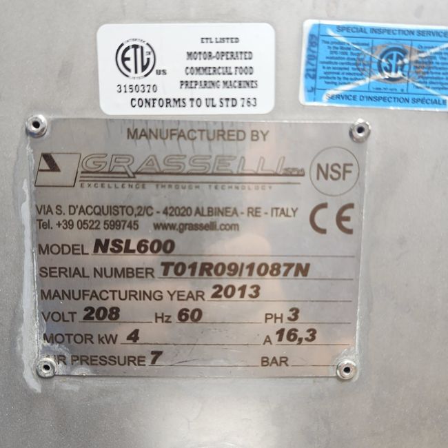 Grasselli Vertical Slicer MODEL NSL 600. 208volts, 60hz, 3ph, 16.3amp. In good working condition (Loading Fee $250) (Located Huntingdon, Quebec, Canada)