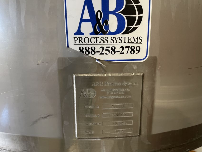 Stainless Steel Balast Tank with level sensor, 3" air valve and CIP - AB Process Systems Model: AG POT SeriaL: 1636200301; Capacity 45 gal; Year 2017; (Loading Fee $200) (Located Dixon, IL)