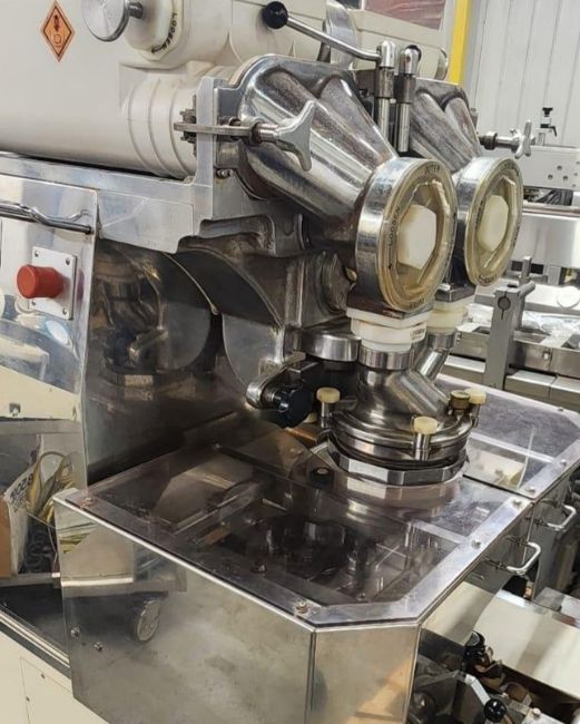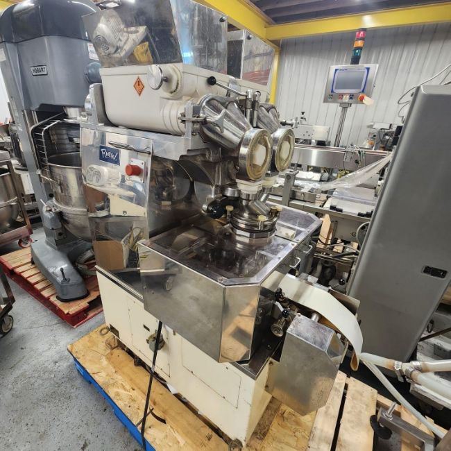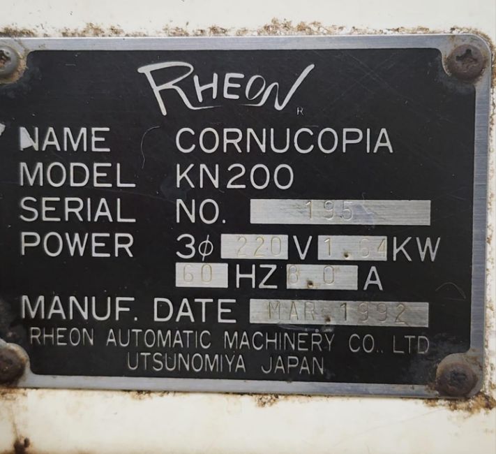 Rheon Cornucopia Model KN-200 “Cornucopia” Encrusting Machine, S/N 195. Suitable For Spherical Molding, Continuous Cylindrical Extrusion And Bar Shape Molding. Easily Adjustable From 10 Grams To 250 Grams.Sold as is (Loading Fee $250) (Located West Hinchinbrooke, Quebec, Canada)