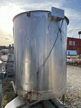 Used Approximately 500 Gallon Stainless Steel Tank, Dimensions: 52" dia. x 58 staight side, Open top, flat bottom, (4) baffles, Mounted on legs (P#21598-02) (Loading Fee $100) (Located Hainesport, N.J.)