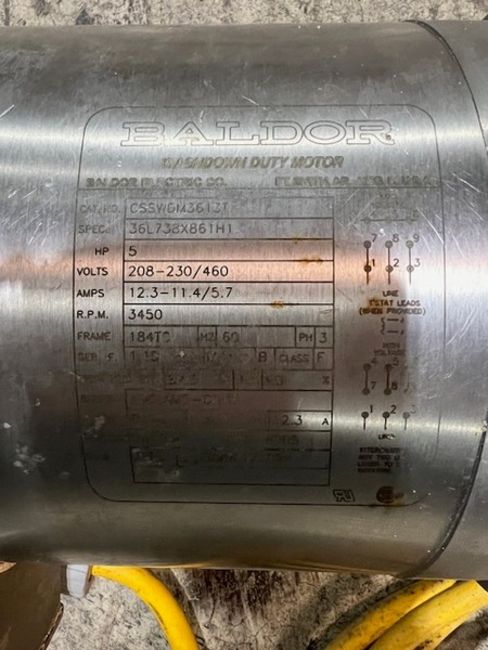 Alfa Laval 5 hp All S/S Centrifugal Pump, Model GHH-10 with 2" x 2.5" S/S Head, Baldor Electric Motor, 3450 RPM, 208/230/460 Volts with Power Cord (Load Fee $75) (Located Harrodsburg, KY)