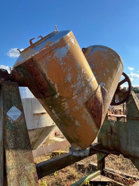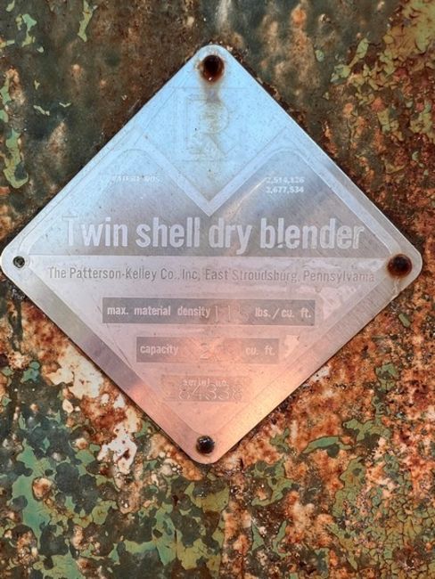 Used Approximately 20 Cubic Foot Stainless Steel V-Blender, Manufacturer: Patterson-Kelley, Capacity: 20 cubic feet, Serial: 184388, Max. material density: 115 lbs/cubic foot, Material of construction: stainless steel, Mounted on stand (P#9848-07) (Loading Fee $200) (Located Atlanta, GA)