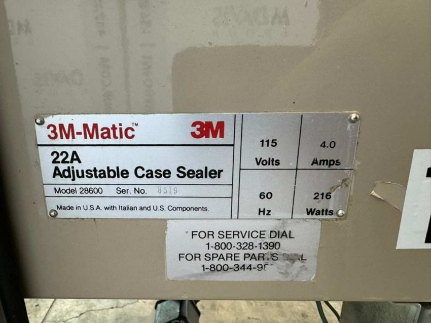 3M-Matic Top & Bottom Adjustable Case Sealer, M/N 28600, S/N 8519, 115 Volts, with Top & Bottom Tape Head (INV#103032) (Located @ the MDG Auction Showroom 2.0 in Monroeville, PA) (Handling, Loading & Site Management Fee: $250.00 USD)