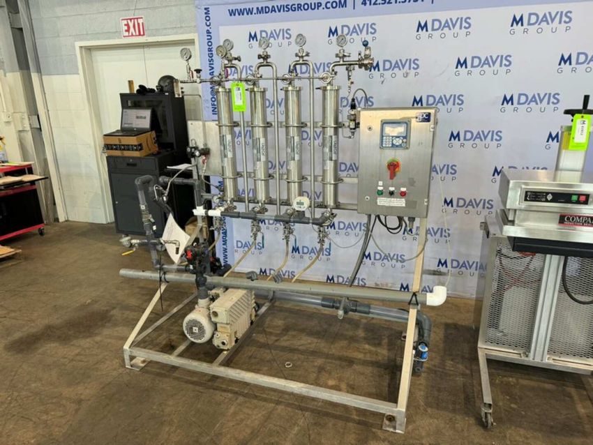 PolyPore Liqui-Cell S/S (4) Filter Filtration System, with Vacuum Pump, Mounted on S/S Frame (INV. #106534) (LOCATED MDG SHOWROOM 2.0 @ MONROEVILLE, PA) (RIGGING, LOADING, & SITE MANAGEMENT FEE: $300.00 USD)