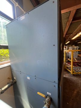 MODEL:NQA20 S/N:34185012107 VOLTAGE:460V/3PH/60HZ MIN TEMP:20F MAX TEMP:80F HEAT TRANSFER FLUID:WATER COMPRESSOR A:10HP 17.9RLA COMPRESSOR B:10HP 17.9RLA, (RIGGING, HANDLING, LOADING & SITE MGMT FEE: $500.00)