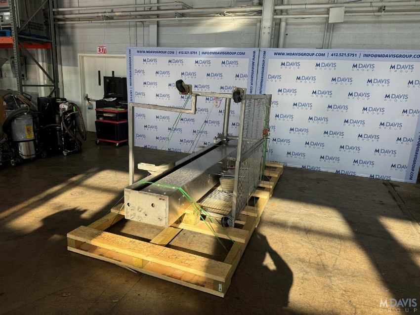 BRIDGE S/S PATTY FORMER, I-480, S/N 28154-OR, 460 VOLTS, 3 PHASE, WITH APROX. 38 W PLASTIC INTERLOCK CONVEYOR, WITH BRIDGE S/S COLUMN LIFT, M/N LL96, S/N 281128-OR, WITH SAFETY CAGE, (RIGGING, HANDLING, LOADING & SITE MGMT FEE: $1,200.00 USD)