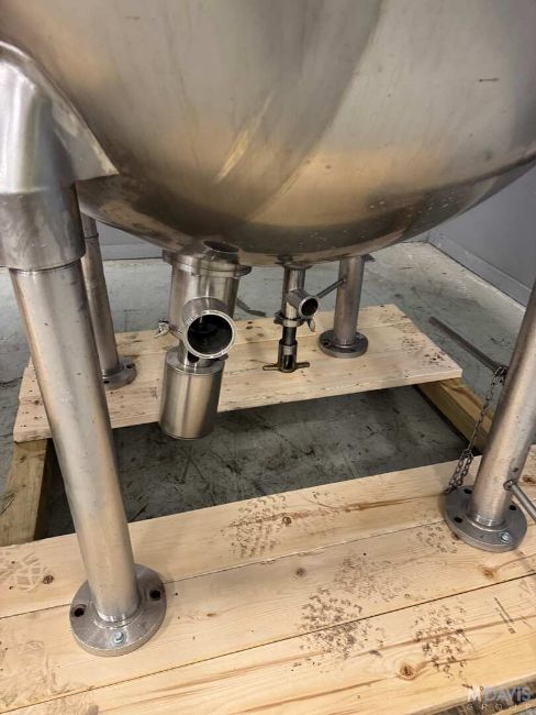 GROEN 300 GAL. S/S KETTLE, TA 300 SP, S/N 82840, WITH (1) S/S HINGE LID, BOTTOM MOUNTED S/S AIR VALVE, MOUNTED ON S/S LEGS, (RIGGING, HANDLING, LOADING & SITE MGMT FEE: $1,000.00 USD )