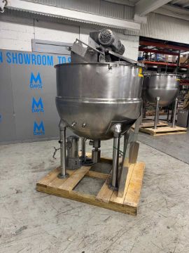 GROEN 300 GAL. S/S KETTLE, M/N NEM-300, NAT'L BD: 88259, Type 316 S.S., with Top Mounted Agitation, with Spare S/S Clad Motor (LOCATED @ MDG SHOWROOM - PITTSBURGH, PA)(RIGGING, HANDLING, LOADING & SITE MGMT FEE: $1,000.00 USD)