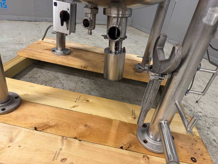 GROEN 250 GAL. S/S KETTLE, NEM 250 SP, S/N 82840, WITH BOTTOM MOUNTED S/S AIR VALVE, WITH (2) S/S HINGE LIDS, MOUNTED ON S/S LEGS (NOTE: Missing Agitation Motor)(LOCATED @ MDG SHOWROOM - PITTSBURGH, PA)(RIGGING, HANDLING, LOADING & SITE MGMT FEE: $1,000.00 USD)