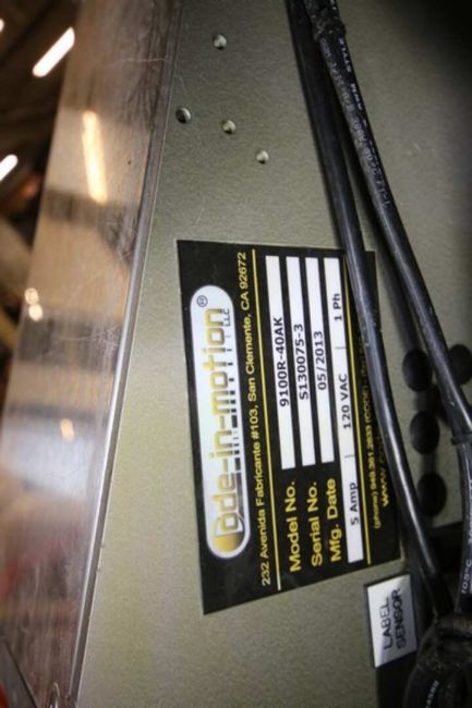 Code-In-Motion / Versapply In-Line Labeller, Model 1022-06040603, SN S130075-1, with (2) Heads Models VA9100L & R-40PK, SN S130075-2 & 3, with (2) Banner Cameras & 7' L x 6" W x 40" H Conveyor, 120V, (INV#89048) (Located @ the MDG Showroom in Pgh., PA) (Skidding, Rigging, Loading & Site Management Fee: $200)