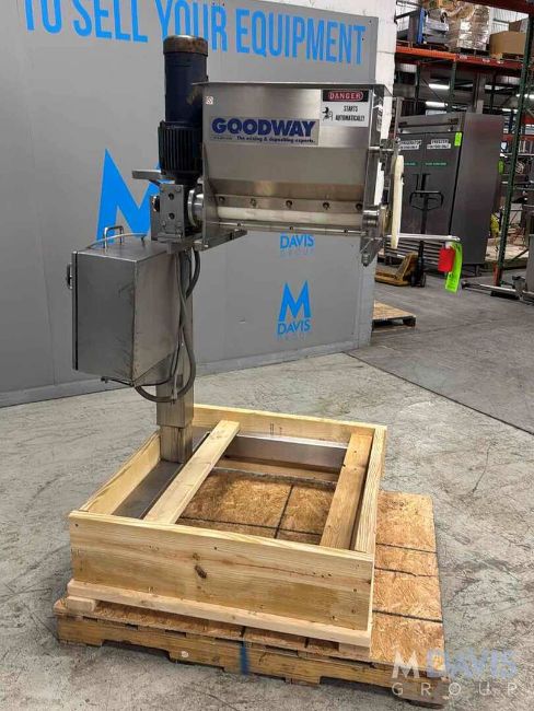 GOODWAY S/S DEPOSITOR, MODEL DID40, S/N 110, 18” W WITH 18” L X 11 1/2” W X 11” D HOPPER, LEESON 1/2 HP / 1750 RPM, 110V, PORTABLE ON WHEELS WITH ADJUSTABLE HEIGHT, APROX. 45” H LOWERED WITH ALLEN BRADLEY SLC500 CONTROLS, (INV #32436) (LOCATED @ MDG SHOWROOM - PITTSBURGH, PA) (RIGGING, HANDLING, LOADING & SITE MGMT FEE: $250)