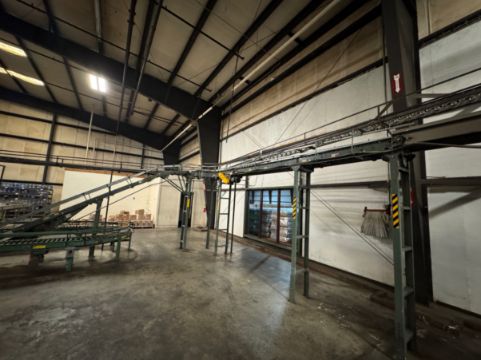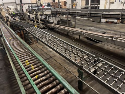 SECTIONS RUN FROM TAPING MACHINE TO PALLETIZER (RIGGING, LOADING, & SITE MANAGEMENT FEE: $2400.00 USD) (LOCATED IN APPLING, GA)