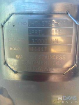 WALKER 30,000 GAL. S/S SILO, M/N 11447, S/N S/N VHT-5763-SS, SINGLE WALL, S/S EXTERIOR, LOWER MAN DOOR, APROX. 12 FT. DIA. (RIGGING, LOADING, & SITE MANAGEMENT FEE: $4,400.00 USD)(LOCATED IN APPLING, GA)
