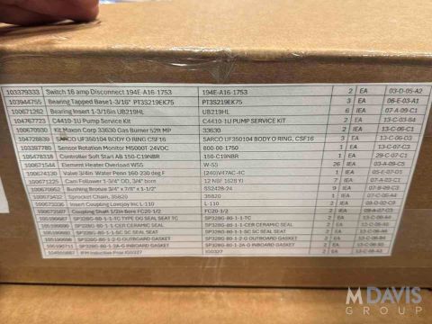 MEAT PREP OVEN PARTS, INCLUDES 40 W S/S CONVEYOR BELTING, S/S BRAIDED HOSE, (3) HEAT & CONTROL MIST ELIMINATOR PADS, HEAT & CONTROL JACK SUB ASSEMBLY, (2) MENNEKES 30 AMP S/S RECEPTACLES CAT # ME 430SLPM17-M2, BEARING FLANGE, HONEYWELL CONTROLLER, FIREYE FLAME MONITOR BOXES & OTHER PARTS, MAGNATROL 1.5 BRASS VALVES, (3) DUFF NORTON ACUATORS, ALLEN BRADLEY SMART CONTROLLER CAT #150-C19NBR, WATLOW CONTROLLER, S/S SPRAY BALLS, BRASS CHECK VALVE, THERMOMETERS, TOTE TUMBLER PARTS, REXNORD DRIVE PARTS, BBC CAM FOLLOWERS, JOHNSON & HONEYWELL CONTROLS, BRASS BUSHINGS, THERMOCOUPLERS, TOOL O MATIC DRIVES, ASCO VALVES, V-BELT