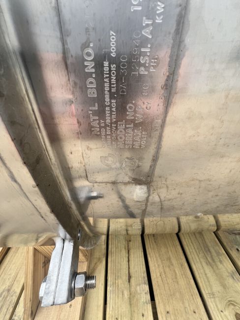 GROEN BOTTOM JACKETED S/S KETTLE WITH SWEEP SCRAPE AND PROP AGITATION (DUAL MOTION), MODEL DA-300, S/N 125940 (INVENTORY #34072) (LOCATED @ MDG SHOWROOM - PITTSBURGH, PA) (RIGGING, HANDLING, LOADING & SITE MGMT FEE: $1,000.00 USD)