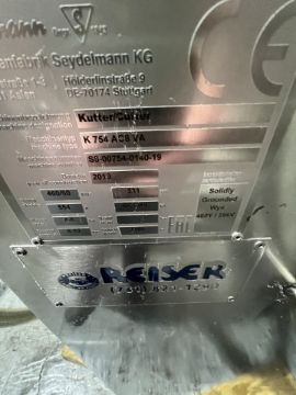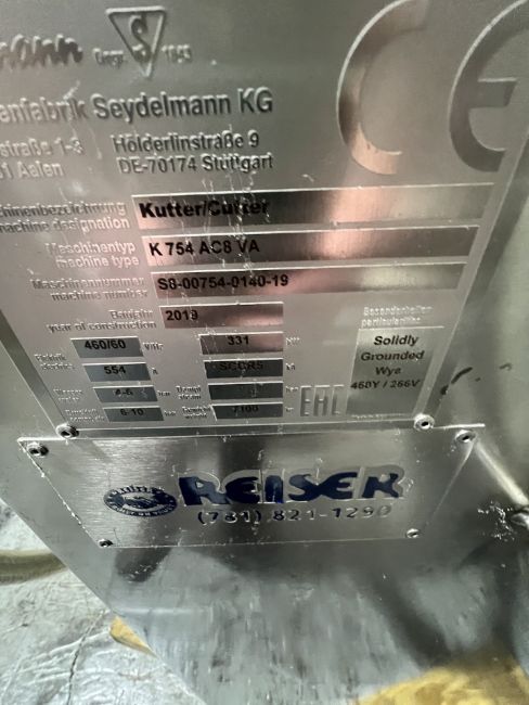 2019 REISER SEYDELMAN VACUUM BOWL CHOPPER / CUTTER, MODEL K754 AC8 VA, S/N S800754-0140-19, 7100 KG WEIGHT, 240 KG MAX LIFT CAPACITY, 460/60 HZ (INVENTORY #32990) (LOCATED @ MDG SHOWROOM - PITTSBURGH, PA) (RIGGING, HANDLING, LOADING & SITE MGMT FEE: $2,500.00 USD)