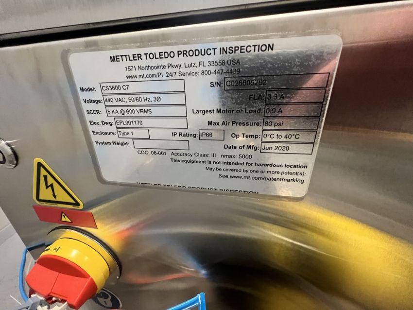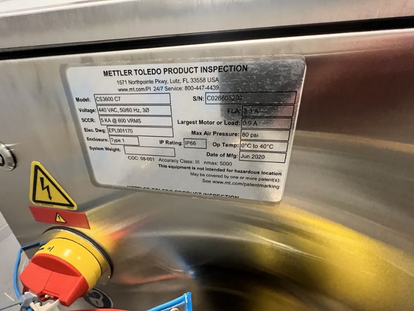 NEW 202 METTLER TOLEDO CHECK WEIGHER, MODEL CS3600 C7, S/N CO26605292, 440 V, 50/60 HZ, 3 PHASE, APPROX. 12 IN. WIDE BELT, 12 IN. WIDE PNEUMATIC PRODUCT REJECT STATION (INVENTORY # ) (LOCATED @ MDG SHOWROOM - PITTSBURGH, PA) (RIGGING, HANDLING, LOADING & SITE MGMT FEE: $500.00 USD)(INVENTORY #33028) (LOCATED @ MDG SHOWROOM - PITTSBURGH, PA) (RIGGING, HANDLING, LOADING & SITE MGMT FEE: $500.00 USD)