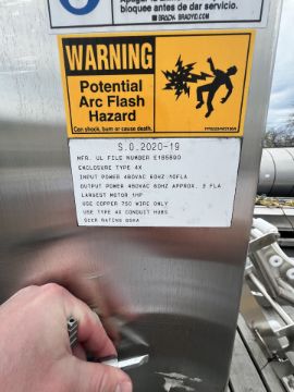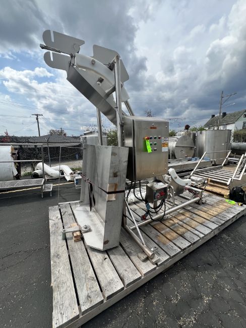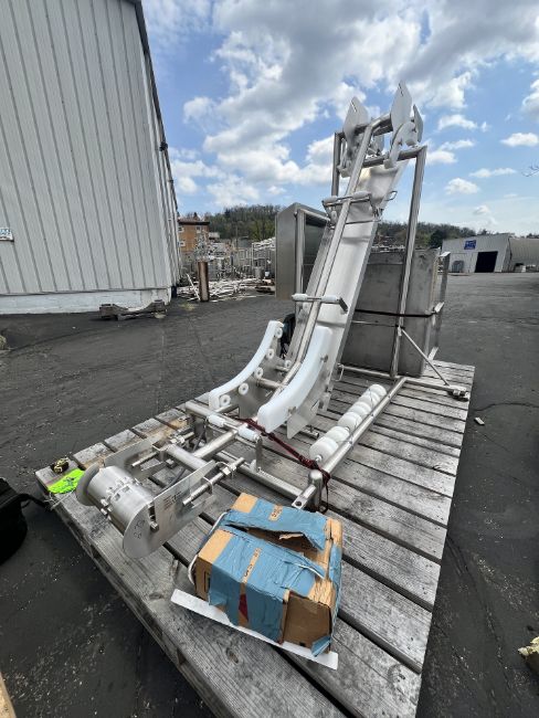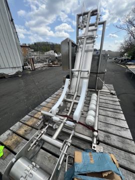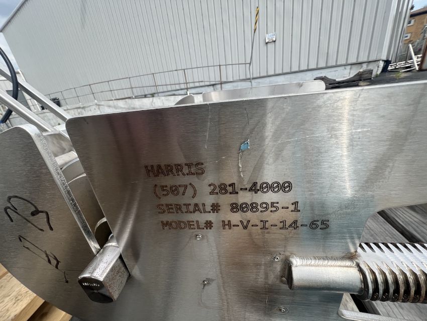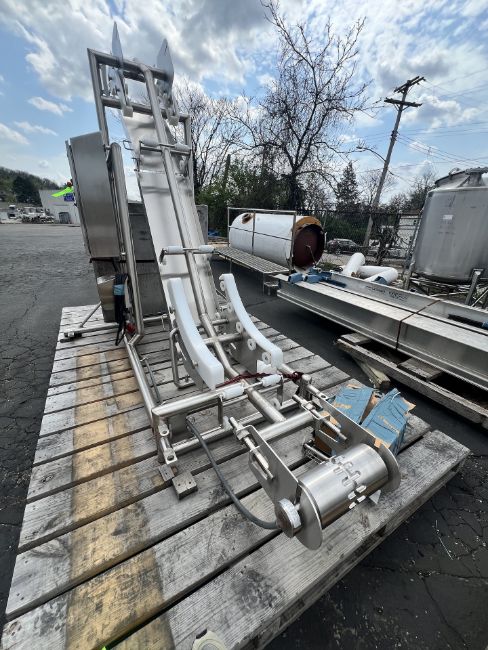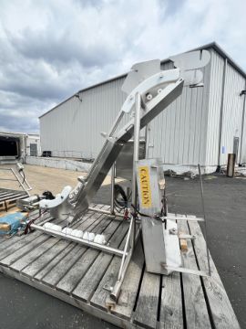 HARRIS PORTABLE S/S INCLINE CONVEYOR, MODEL H-V-I-14-65, S/N 80895-1, WITH RULMECA MOTORIZED 138LS PULLEY, ALLEN BRADLEY POWERFLEX VFDS, APPROX. 16 IN. W, APPROX. 96 IN. HEIGHT (INVENTORY #34076)(LOCATED @ MDG SHOWROOM - PITTSBURGH, PA) (RIGGING, HANDLING, LOADING & SITE MGMT FEE: $250.00 USD)