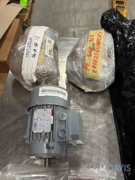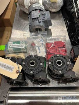 MONDINI TOPPING DISPENSER PARTS, INCLUDES (14) ASSORTED MOTORS & GEARBOXES, GEARBOX PARTS, BELTS, (2) .33 HP 16 W DRUM ROLLERS, TELE. SAFETY SWITCHES, BEARINGS & BEARING INSERTS,