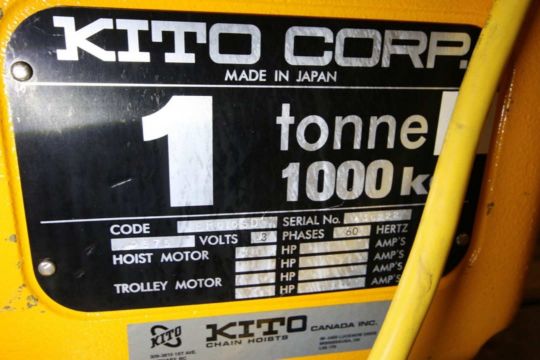 Kito 1 Ton Tractor Driven Electric Hoist, Code ER010SD, SN 436222, 575V (INV#109031) (Located @ the MDG Auction Showroom in Pgh., PA) (Skidding, Loading, Handling and Site Management Fee $100)