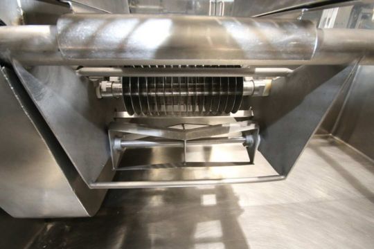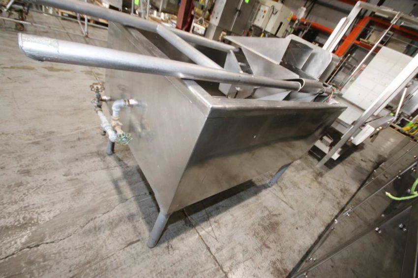 Damrow S/S Slicer, Model 3, SN 16801 with 9.5" Blades, 1 hp / 1725 rpm Drive Motor, 230/460V, Mounted on 46" L x 30" W x 15" D Jacketed S/S Tank (INV#96677) (Located @ the MDG Auction Showroom in Pgh., PA)(Loading, Handling and Site Management Fee $75)