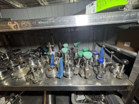 Lot of (34) PCS Assorted 1.5", 2", 2.5", 4" Clamp Type S/S Valves Including Air Valves, Check Valve, Butterfly Valve, 3 - Way Valve (INV#101807) (Located @ the MDG Auction Showroom in Pgh., PA) (Loading, Handling and Site Management Fee $50)