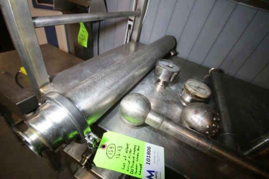 Assortment of S/S Items Including 2" x 35" L On-Line Clamp Type S/S Filter, (2) Invalco & Diesel 1.5" Clamp Type Turbine Flow Meters, Tank dual Spray Ball & (2) Gauges (INV#101806) (Located @ the MDG Auction Showroom in Pgh., PA) (Loading, Handling and Site Management Fee $25)