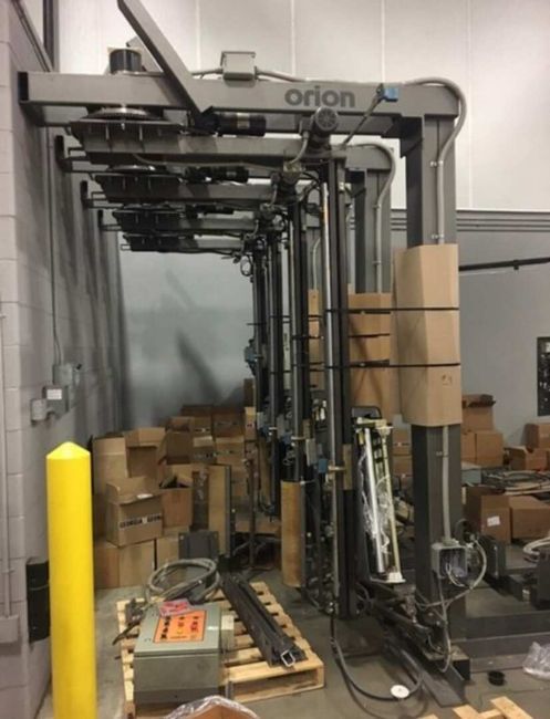 Orion Aprox. 12' H Pallet Wrapper, Model MPA66, SN 2006-0516582, with Control Box with Allen Bradley Micro Logix 1000 PLC Controls, 120V (Located Outside, Under Commercial Grade Tarps) (INV#96618) (Located @ the MDG Auction Showroom in Pgh., PA) (Loading, Handling and Site Management Fee $200)