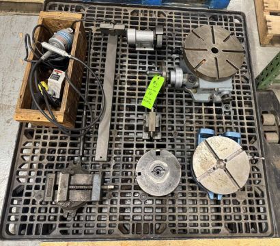 ASSORTMENT OF MACHINE SHOP ITEMS ON PALLET INCLUDING TRYOKE R12 12" ROTARY TABLE, PALMGREN 10' ROTARY TABLE, PLAMGREN 4' VISE, FOREDOM SERIES CC ROTARY TOOL & ETC, (INVENTORY # 31972) (LOCATED @ MDG SHOWROOM - PITTSBURGH, PA) (RIGGING, HANDLING, LOADING & SITE MGMT FEE: $50)