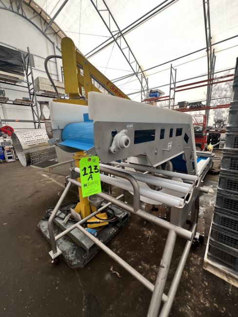 CLEATED PORTABLE INCLINE CONVEYOR, APPROX. 15 IN. W SANITARY BELT, APPROX. 2 IN. CLEATS, APPROX. 62 IN. HEIGHT(LOCATED IN GREENBAY, WI) (RIGGING AND LOADING FEE: $200)