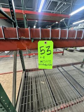 (2) SECTIONS OF TEARDROP STYLE PALLET RACKING, EACH SECTION APPROX. 101 IN. L X 42 IN. W X 120 IN. H, (6) TOTAL UPRIGHTS, (12) TOTAL CROSS BEAM SECTIONS (RIGGING, LOADING, & SITE MANAGEMENT FEE: $500.00 USD)(LOCATED IN INDEPENDENCE, OH)