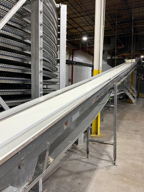 INCLINE BELT CONVEYOR DIMENSIONS APPROX:28L X 18W WITH 1/3/4HP MOTOR & GEARBOX (RIGGING, HANDLING, LOADING & SITE MGMT FEE: $2,000.00)