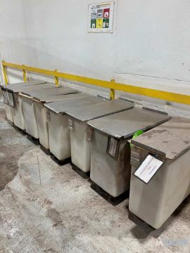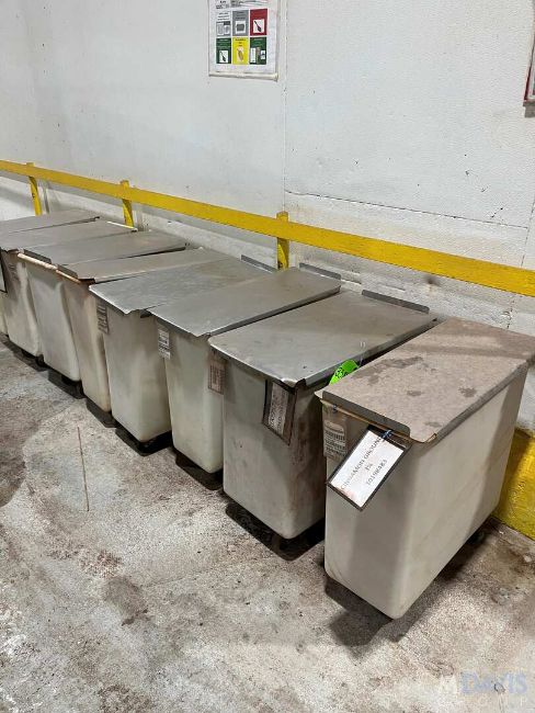 (8) PLASTIC TOTES ON WHEELS, (8) PLASTIC TOTES ON WHEELS(RIGGING, HANDLING, LOADING & SITE MGMT FEE: $150)