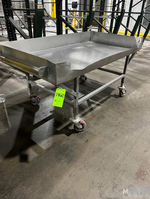 (2) STAINLESS STEEL PUSH TABLES ON WHEELS, (2) STAINLESS STEEL PUSH TABLES ON WHEELS (LOCATED IN CHICAGO, ILLINOIS(RIGGING, HANDLING, LOADING & SITE MGMT FEE: $100)