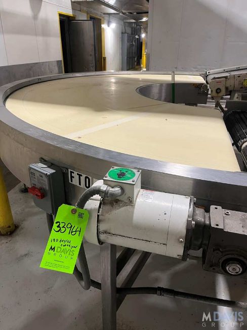 JANTEC 180 DEGREE CURVED BELT CONVEYOR, JANTEC 180 DEGREE CURVED BELT CONVEYOR M/N:PTM SS SP 7344 S/N:3553-2 (RIGGING, HANDLING, LOADING & SITE MGMT FEE: $1,000)