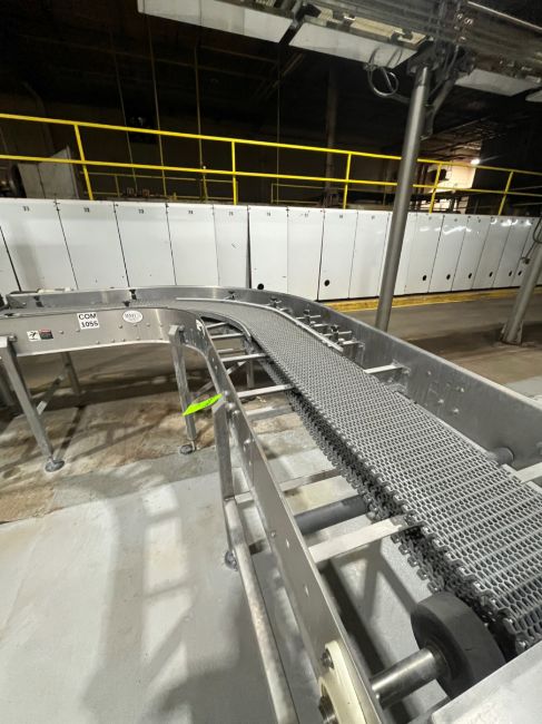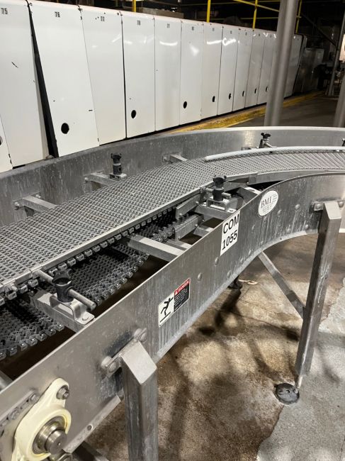 BMI CURVED SECTION OF S/S CONVEYOR DIMENSIONS:APPROX:13L X 12W WITH 1/3/4 HP MOTOR & IRONMAN GEARBOX (RIGGING, HANDLING, LOADING & SITE MGMT FEE: $600.00)