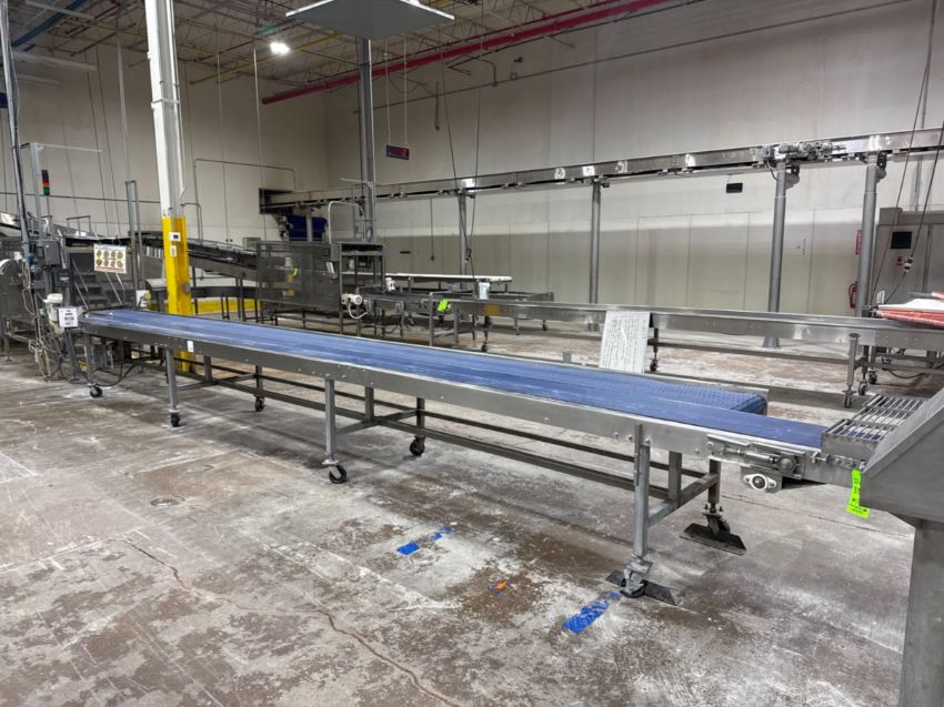 OVERALL LENGTH: 30 FT., BELT WIDTH: APROX. 16 W & APROX. 21 W, MOUNTED ON S/S PORTABLE FRAME (LINE 4)(LOCATED IN CHICAGO, IL) (RIGGING, HANDLING, LOADING & SITE MGMT FEE: $1,500)