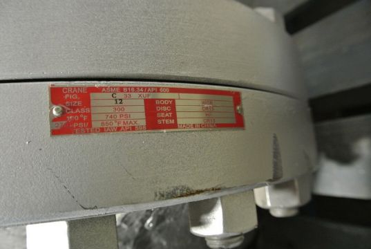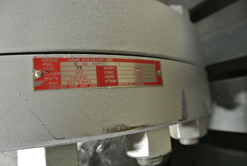CRANE 12" 300# Flanged GATE VALVE, MODEL C33XUF, NEW, FIGURE C 33 XUF, SIZE 12" BODY WCB, CLASS 300, DISC CR13, SEAT HF, STEM CR-13 (NEW SURPLUS) (HANDLING FEE $50) (LOCATED GROVELAND, MA)