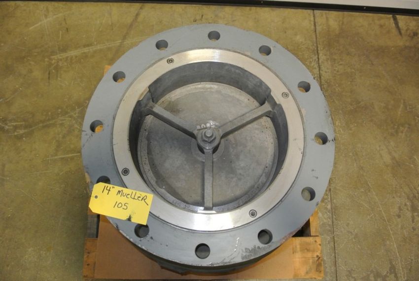 MUELLER 14" 105MAT CARBON STEEL X S/S FLANGED SILENT CHECK VALVE, (NEW SURPLUS) (HANDLING FEE $50) (LOCATED GROVELAND, MA)