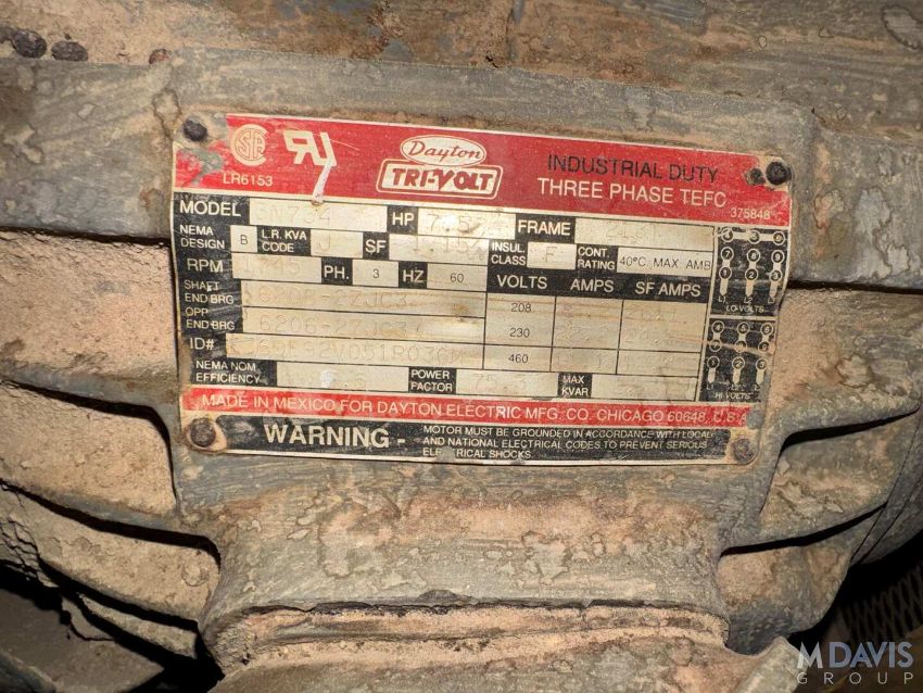 With Dayton Motor, 1745 RPM, 208-230/460 Volts, 3 Phase (LOCATED IN OAK CREEK, WI)(RIGGING, HANDLING, LOADING & SITE MGMT FEE: $940)