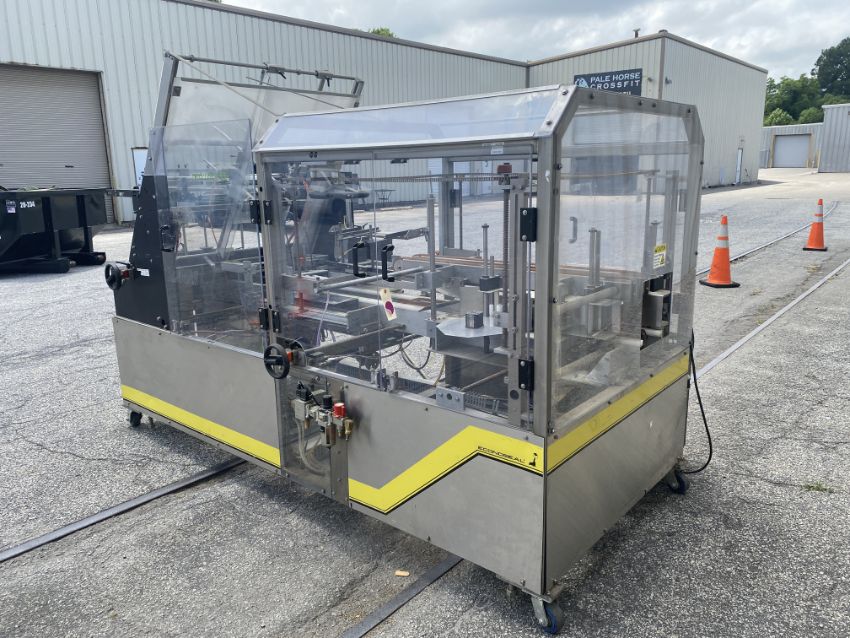 ECONOCORP Casepacker; (2) Dekka tape heads for case closure; Model Econocaser 9775, Missing PLC; SN 10401A (Located Charleston, SC)