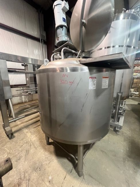 APV 320 Gal. Vertical Jacketed Tank, Model CCA, S/N K1263, High Shear, Two Manway, Sprayball, Adjustable Legs, Aprox. 9' Overall Height x 5' Overall Width (Load Fee $100) (Located Harrodsburg, KY)
