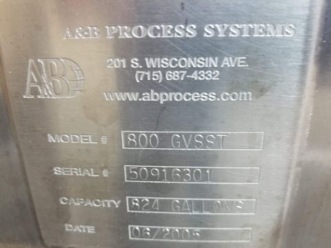 A&B 824 Gal. Enclosed Stainless Steel Process Tank, Model 800-GVSST, S/N 50916301, Year 2005 (Loading Fee $200) (Located Fort Worth, TX)