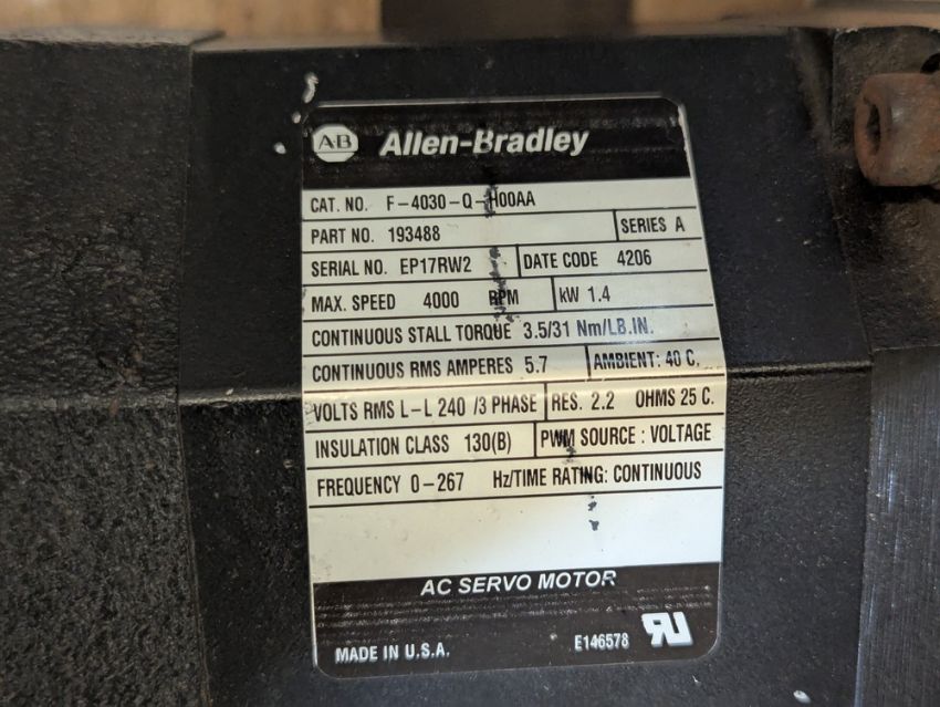 ALLEN-BRADLEY AC Servo Motor; Model F-4030-Q-H00AA Ser A; Max 4000 RPM (Located Charleston, SC)